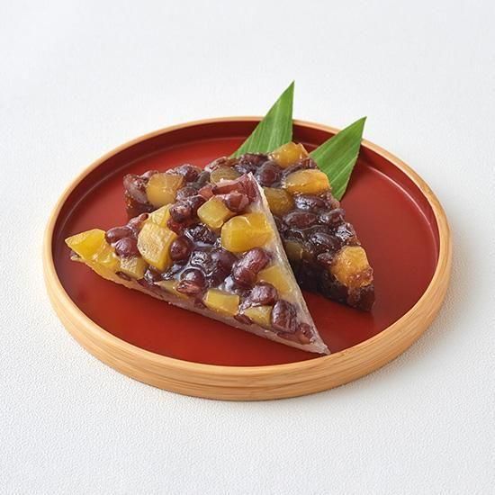 国産の小麦粉と米粉を昔ながらの技術と、職人の技で混ぜ合わせ蒸した「ういろう」はしろと黒糖の2種類です。小豆の甘納豆と栗の甘露煮がごろっと乗った秋の和菓子です。